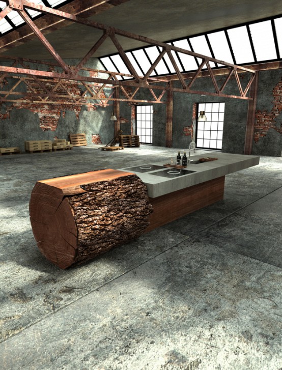 » Minimalist And Natural Oak Tree Trunk Kitchen