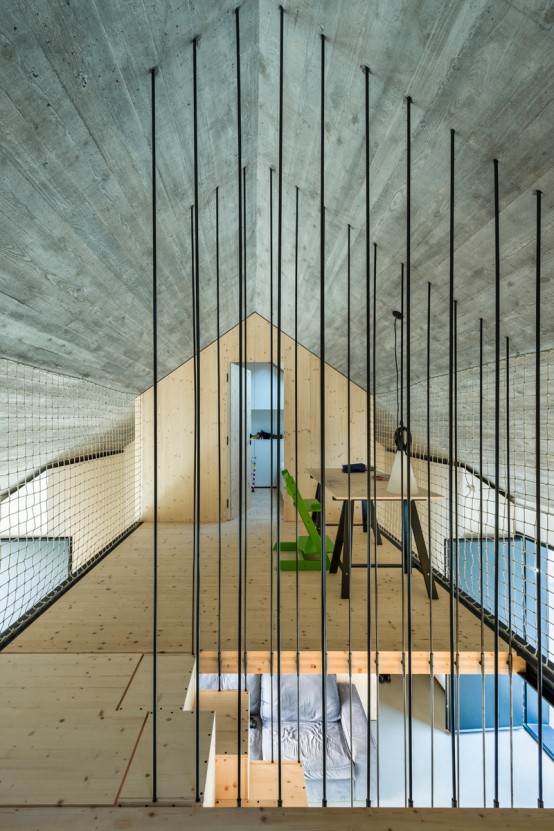 interim landing. The house in a house concept allows each bedroom to perform as a wooden pitched house, where one literally feels like sleeping in his own house and not in a room.